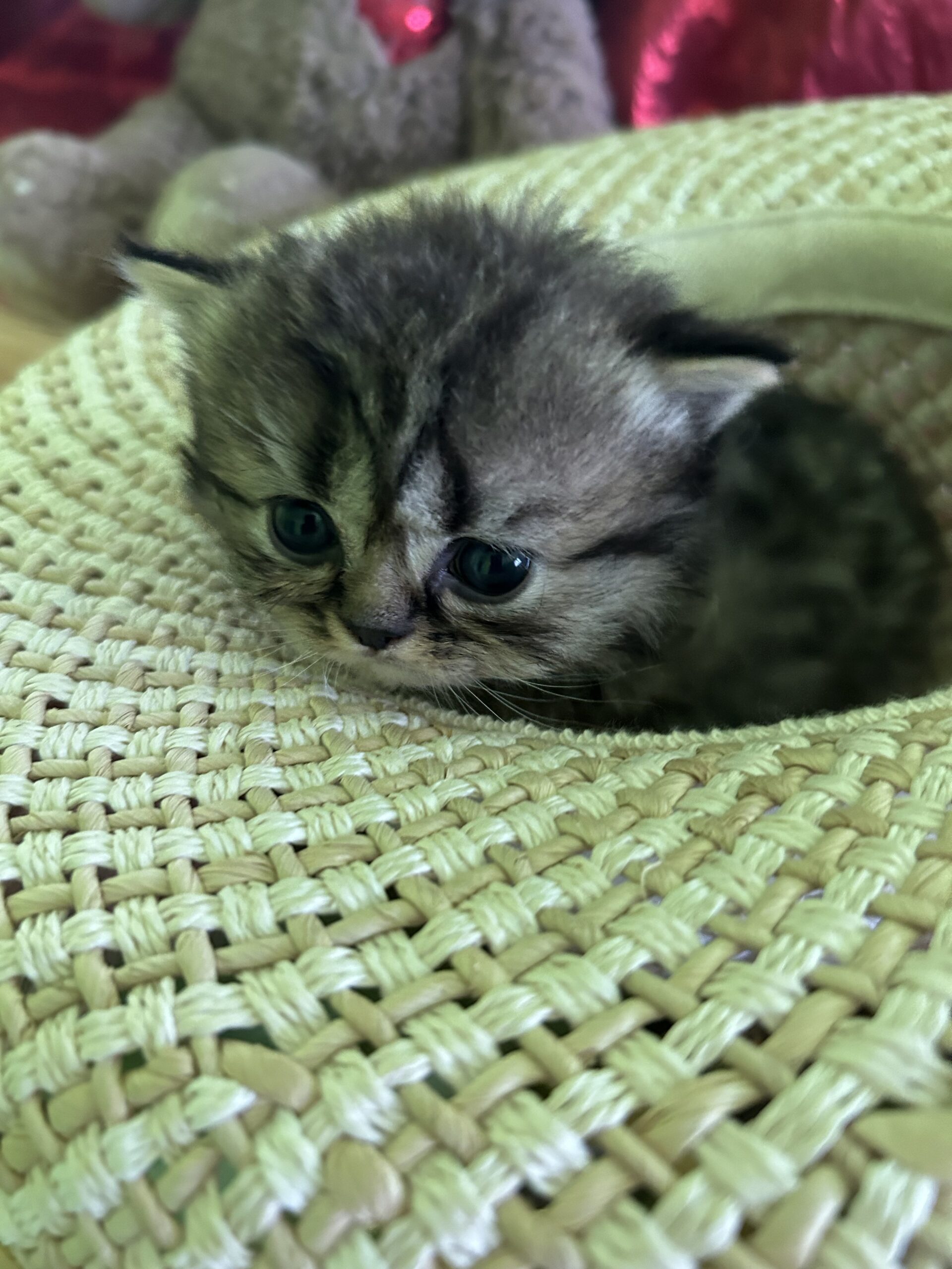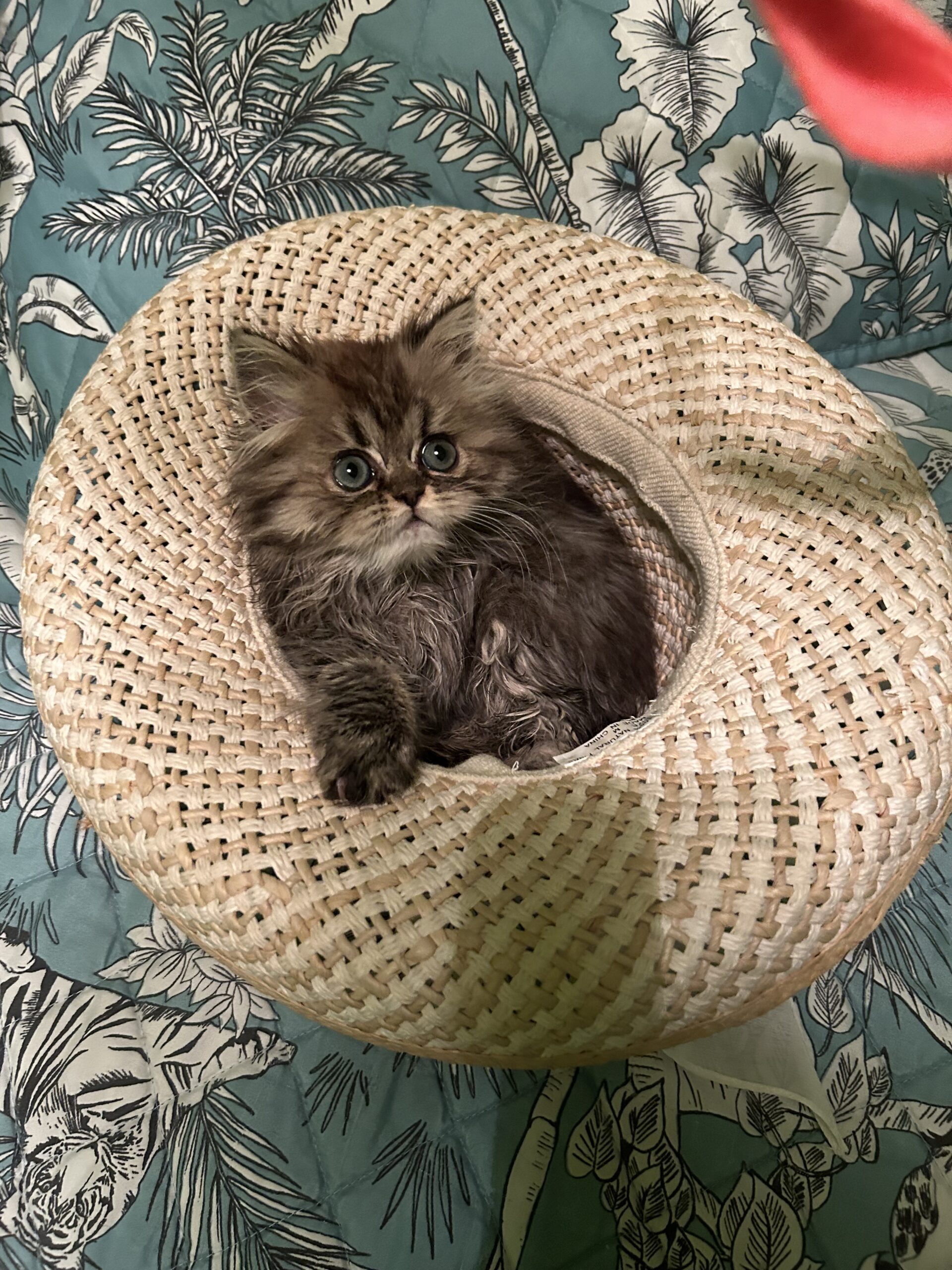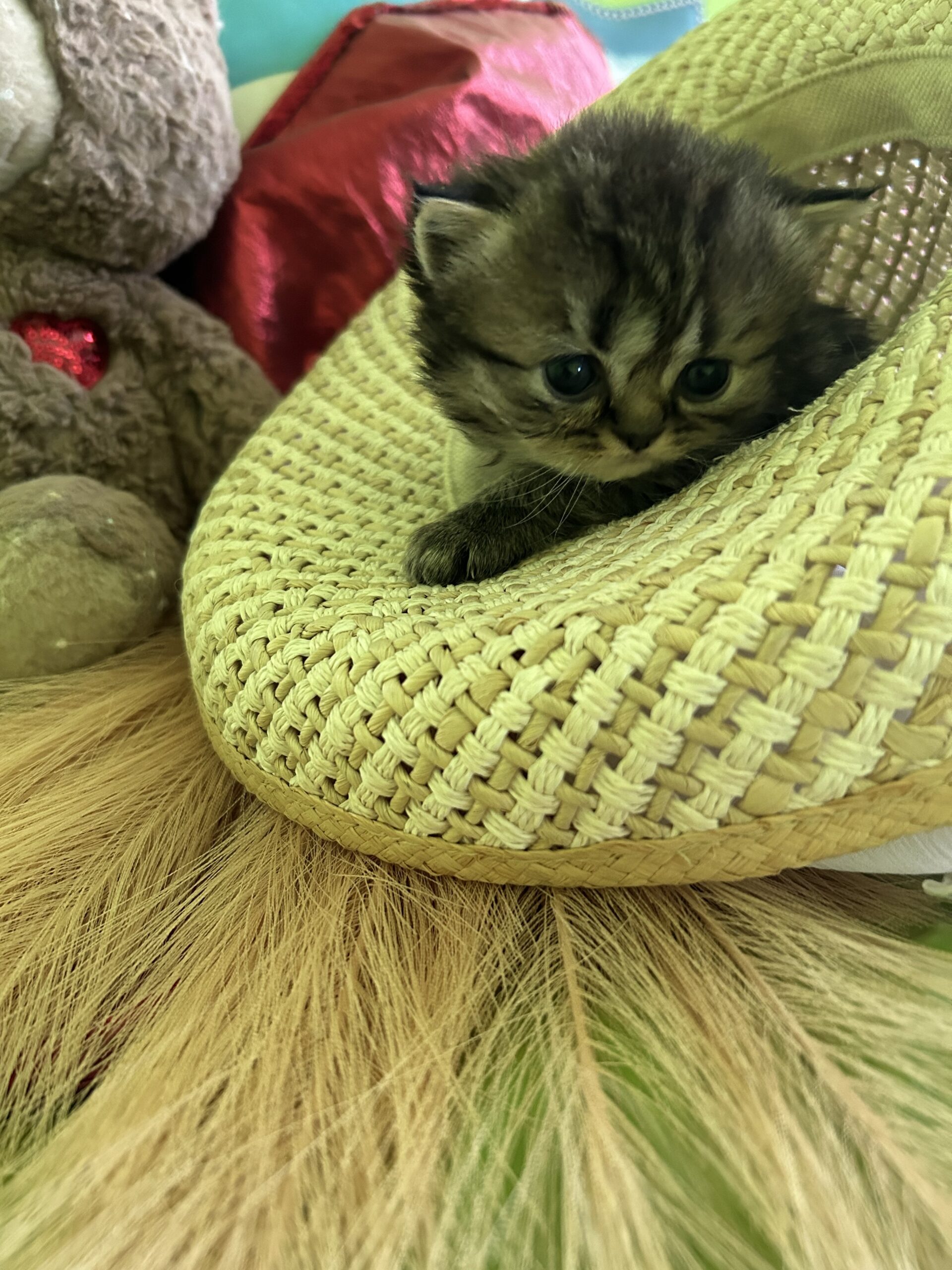 He is a male gollen shaded Chinchilla Persian Kitten With long hair. personality 2 very? and wants you to play with him or pett pet him, Loves to be hell and as soon as you pick him up he will start to purring. His bloodlines go back to Grand Champions in prestigious CAT shows.