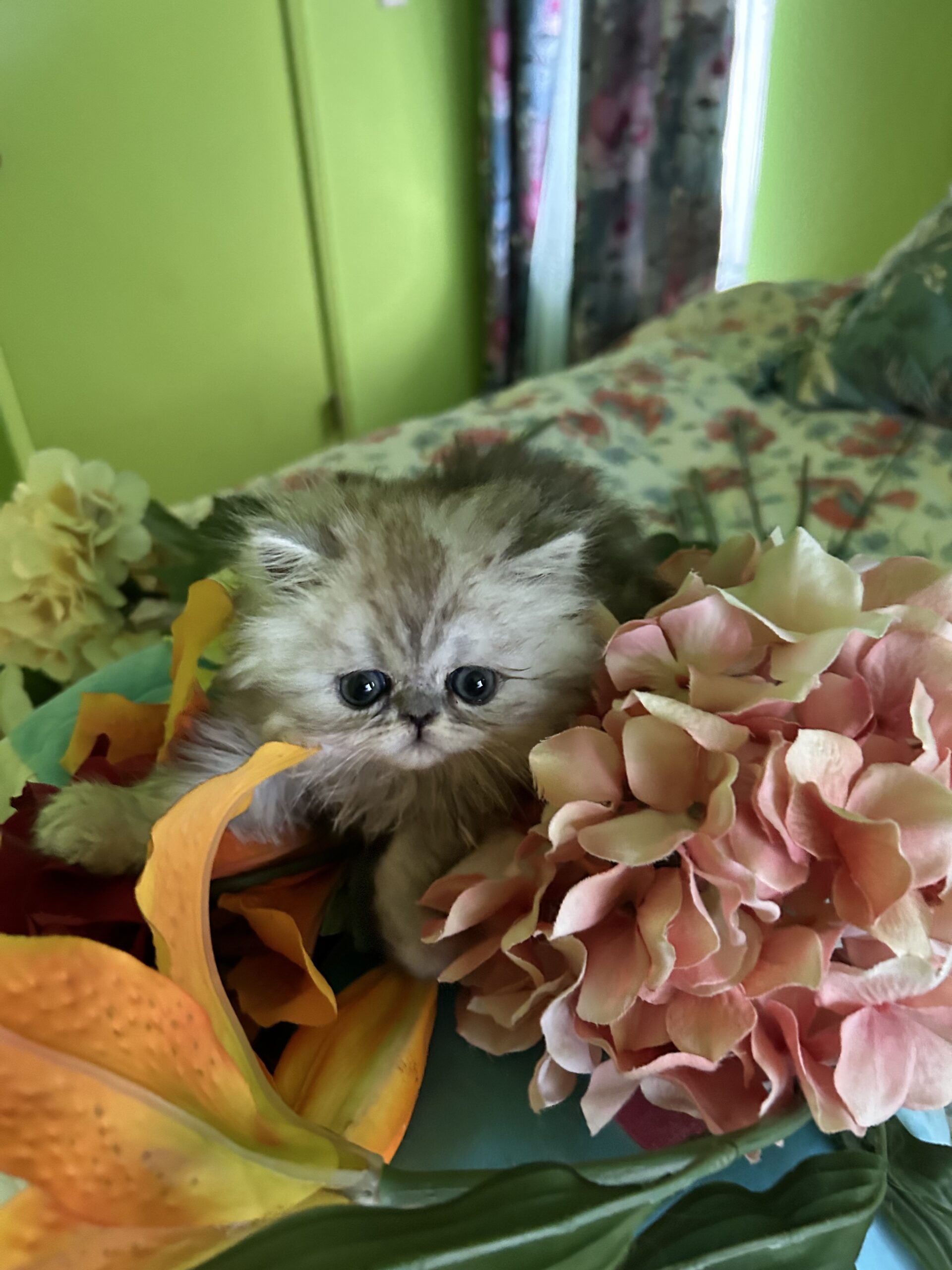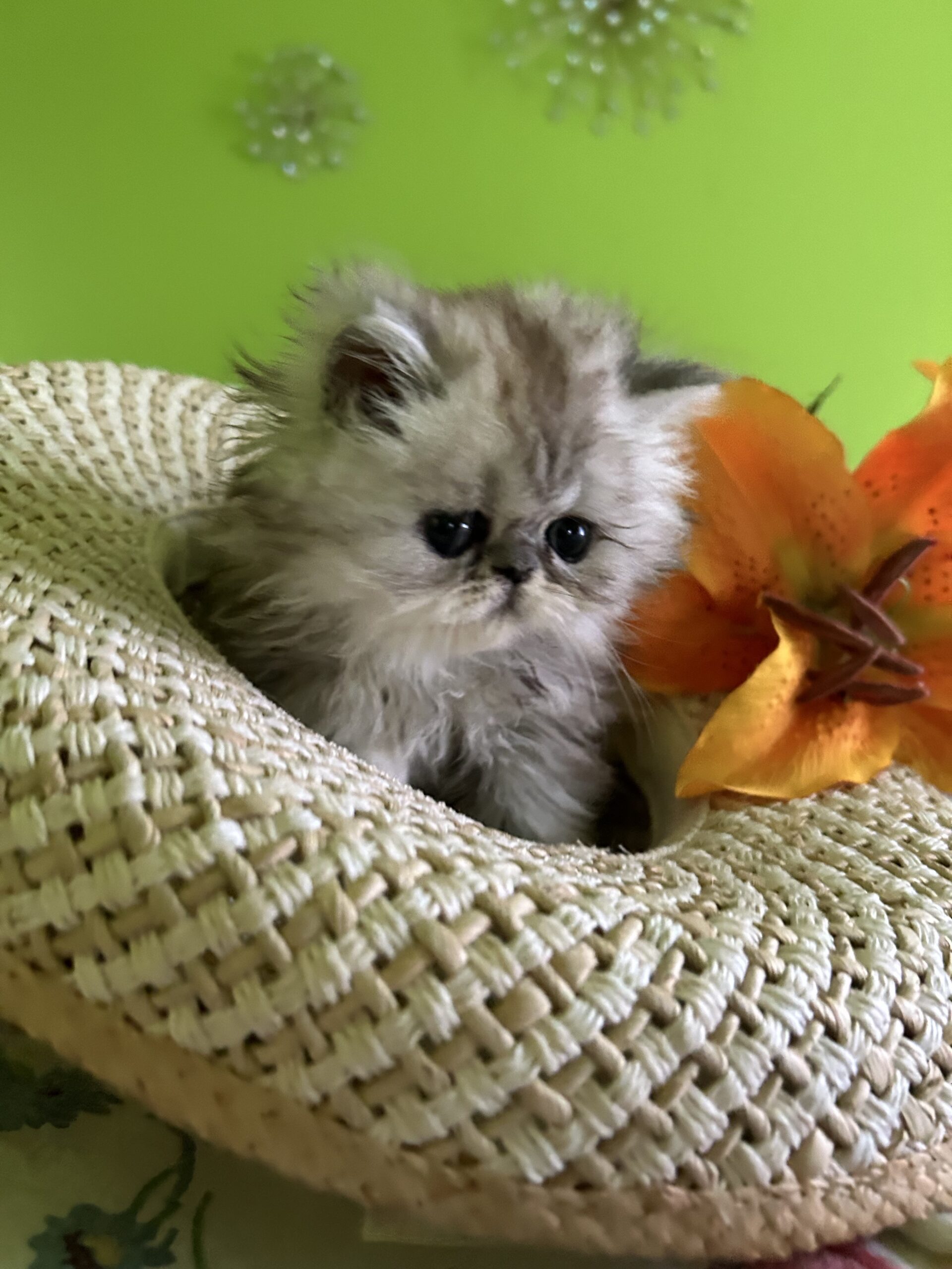 He is a white/silver male Chinchilla Persian kitten with long hair. Born on March 24, 2025. He is very beautiful, friendly, snuggly, intelligent and potty trained kitten. He loves to jump into your Lap to get some love. His ancestors have won awards at prestigious Cat Shows. He comes with all his Medical tests and vaccinations.